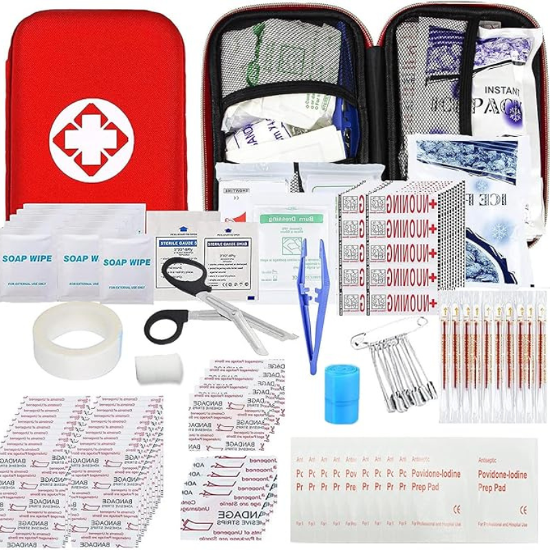 - The durable first aid bag is made by high quality EVA which is water resistant, shockproof and wear resistant. Thanks to its compact dimension, it is ideal for taking with you when travelling, hiking, skiing, camping, in the car, backpack, handbag and outdoor adventures. It is also perfect to add to your emergency storm supply stock.